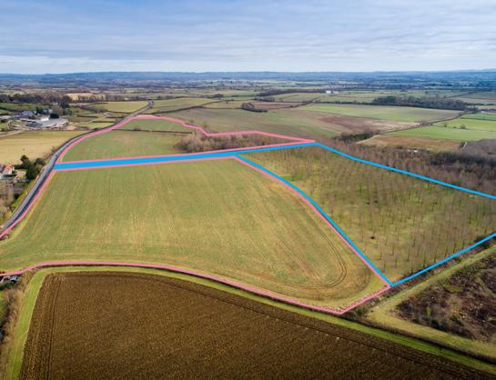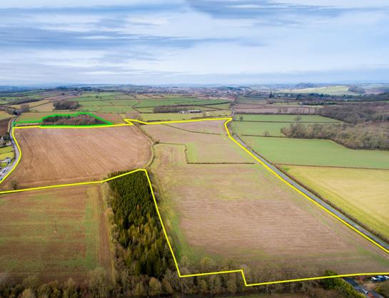 A parcel of level pasture land with timber field shelters and an area of mixed woodland. About 4.58 acres (1.81 ha)