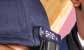 jogging bottoms, light coloured trainers and dark coloured gloves.