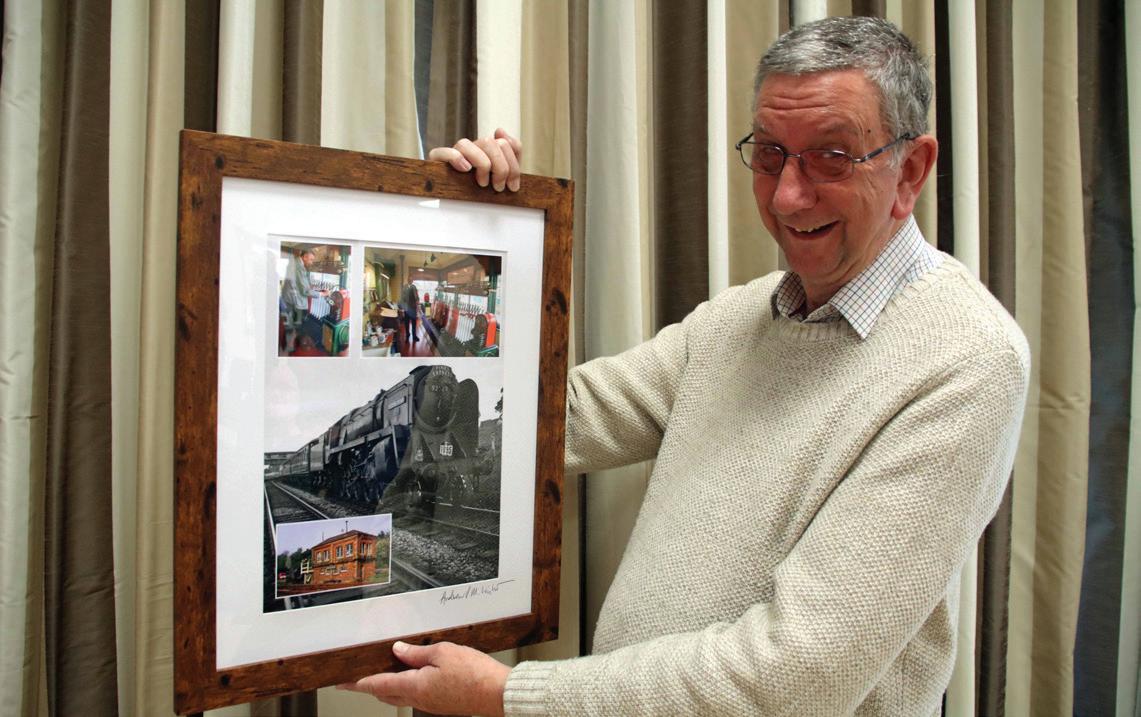 At a special gathering to mark his retirement – attended by Swanage Railway volunteer signaller colleagues past and present - Alan Greatbatch was presented with a framed photograph showing him at work signalling trains in Corfe Castle signal box.