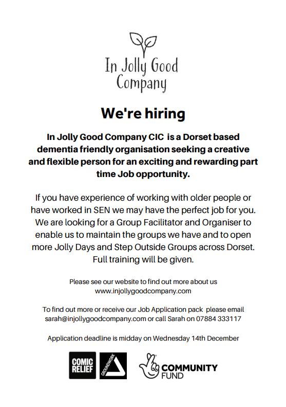 For The Mere Forest & Allotment charities to start in 2023. This is a part time, self employed administrative position that comes with a generous annual payment.