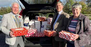 The Rotary Shoebox Scheme has been boosted by 65 Christmas shoeboxes thanks to the efforts of Wimborne Rotarian, Brian Dryden. With the support of his wife Pat and their family, Brian produced 14 boxes, supplemented by 39 boxes filled by Wimborne Rotary members, with a further 12 boxes filled by Rotarians cash donations.