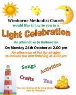 Wimborne Methodist Church is holding a ‘Light Celebration’ on Monday, October 24, from 2.00-4.00pm. This is an alternative to Hallowe’en and will be an afternoon of fun for all ages. The afternoon will include songs, various activities and crafts, finishing with a tea. Everyone is welcome so head over to Kings Street (next to Holmans). They would be delighted to see you.