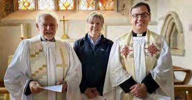 VISITING: Andrea Board at St Mary’s Church in Fordingbridge with Revds John Towler,left, and Tom Burden