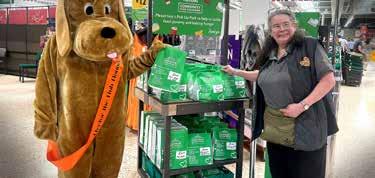 Hector the Hub Hound travelled from the Verwood Hub to Morrisons to help publicise events at the Hub. He picked up a pack of food from Jenny Cook, community champion to donate and help tackle food poverty and holiday hunger.