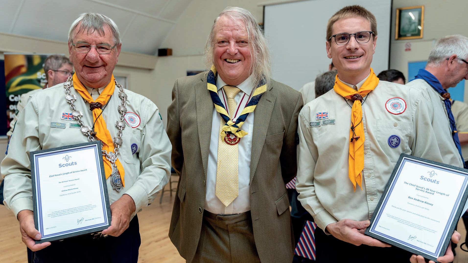 Pictured alongside them is Andrew’s son Ben (on the right) who received his 20 years Scouting Award.