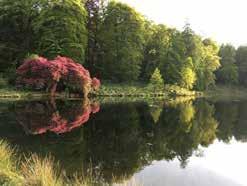 Extensive mature gardens with sweeping panoramic views over parkland to a lake. Enchanting woods, through which you can wander among the bluebells. This garden is a riot of colour in spring, with azaleas, camellias and rhododendrons in flower among shrubs and unusual trees. Beautiful walled kitchen garden.