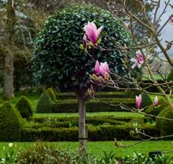 as well as maintaining the mature box and yew hedges and topiary, have created many more perennial beds. The garden is particularly attractive in late spring time.