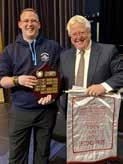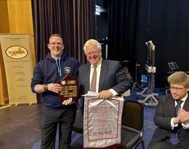 Shaftesbury Town Silver Band chair Greg Lowe is presented with the trophy at the West of England brass band championships