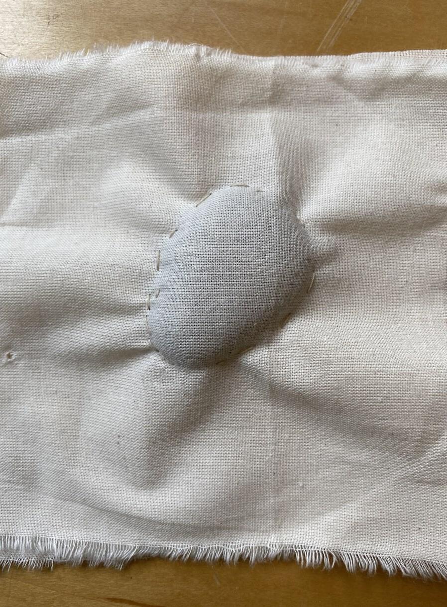 need to use one now in order the hold the object in place as you stitch around it. You will inevitably get some creases or ridges of fabric around the edge of the object (unless you are using a stretchy