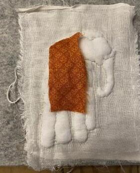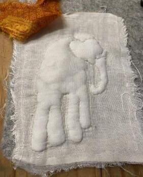 The elephant was made using the Trapunto technique, and I then added extra layers, behind and on top, and quilted through all 5 and 6 layers at the same time.