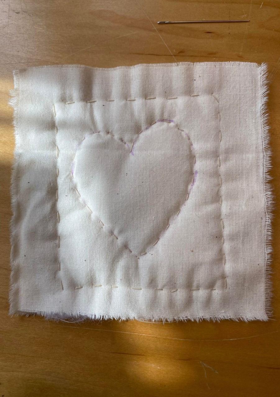 Stitch as much or as little detail into the work as you like. This sort of really basic quilting is one of my favourite ways of adding texture to fabric.