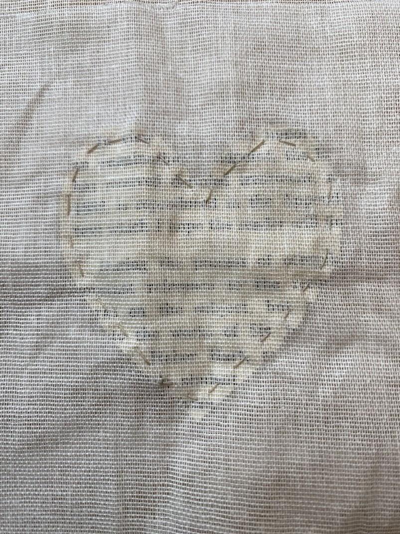 Trace or draw your design onto a piece of fine muslin or other sheer fabric with a loose/open weave. Take another piece of the fabric and put them wrong sides together.