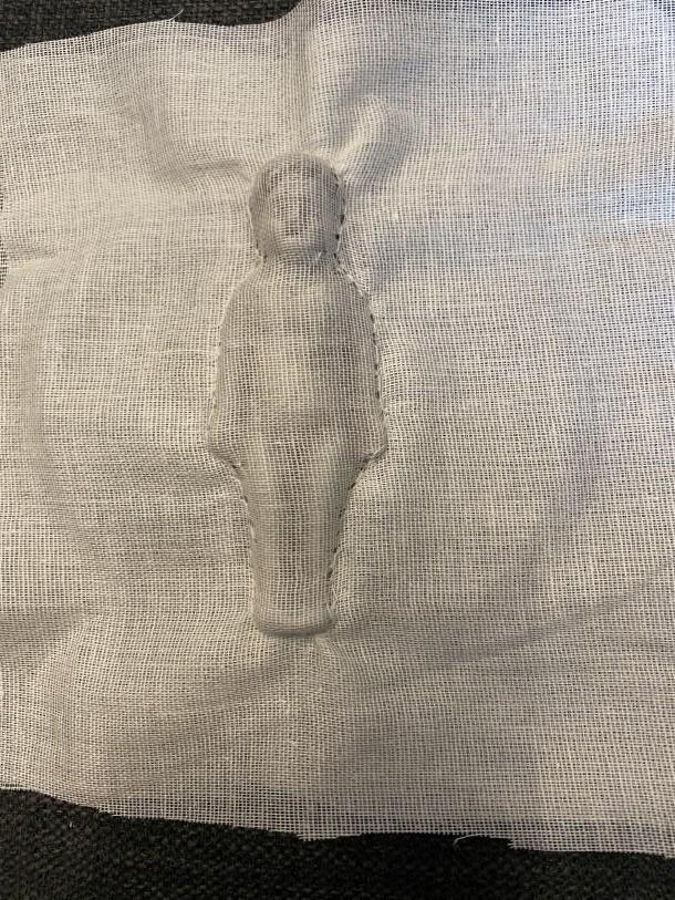 Make up a sample of Trapunto, but this time use a see-through fabric. If it is plastic, or non-woven, you might need to cut a small hole in the back in order to stuff the shape.