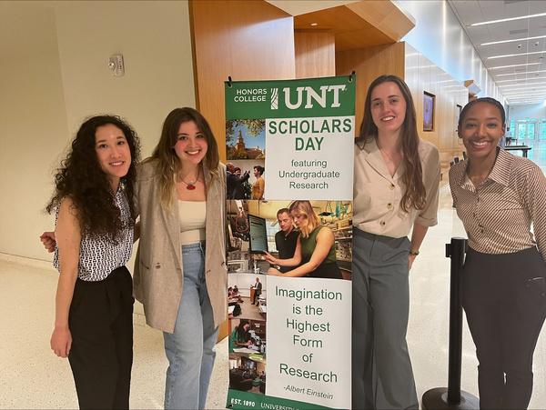 Four of our students presented at this year's Scholars' Day, which is hosted annually by UNT's Office of the Provost and Vice President for Academic Affairs and the Honors College. The event on April 5 celebrated their work as researchers and contributors in our academic community. Our scholars this year are: Rylee Babino, Evangeline Dwelle, Grace Martin-Young and Nicole Spero