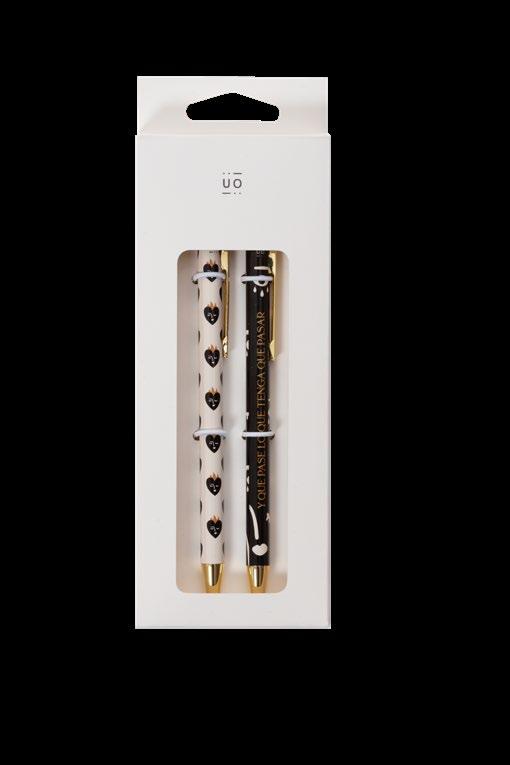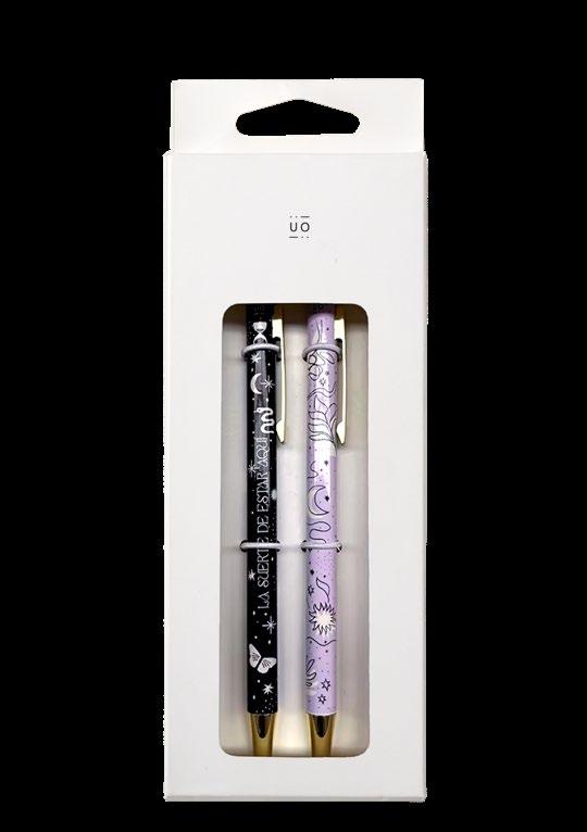 Tinta gel recargable azul y negro Cuerpo metálico con clip de enganche Mecanismo retráctil y punta metálica SET DE BOLIS