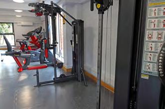 • Chest press, cable machine, rear delt row, leg press and leg extension/leg curl