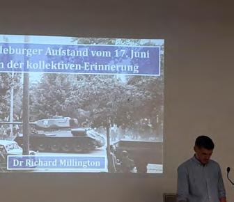 Dr Richard Millington, Senior Lecturer and Programme Leader for German, presented a public lecture at Magdeburg City Hall on ‘The Collective Memory of the Magdeburg Uprising of 17 June 1953’, after being invited by the head of the City Archive. The lecture was recorded by the independent TV station Offener Kanal Magdeburg and broadcast in the summer.