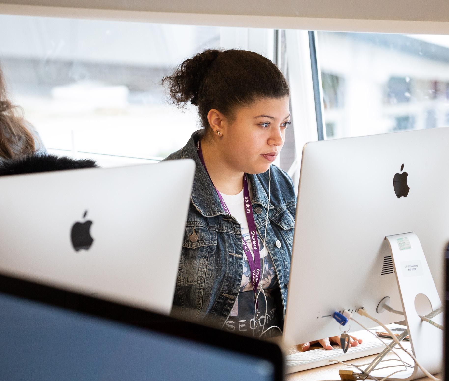 Students have dedicated journalism suites at Gateway House in the city centre. These newsroom facilities are complete with Apple Macs with creative software, and large screens running the news. The specialist journalism studio is an ideal space for filming news reports and recording audio packages. There’s also a range of production equipment which can be borrowed including cameras, audio recorders and mics, mobile filming kits and portable lighting.