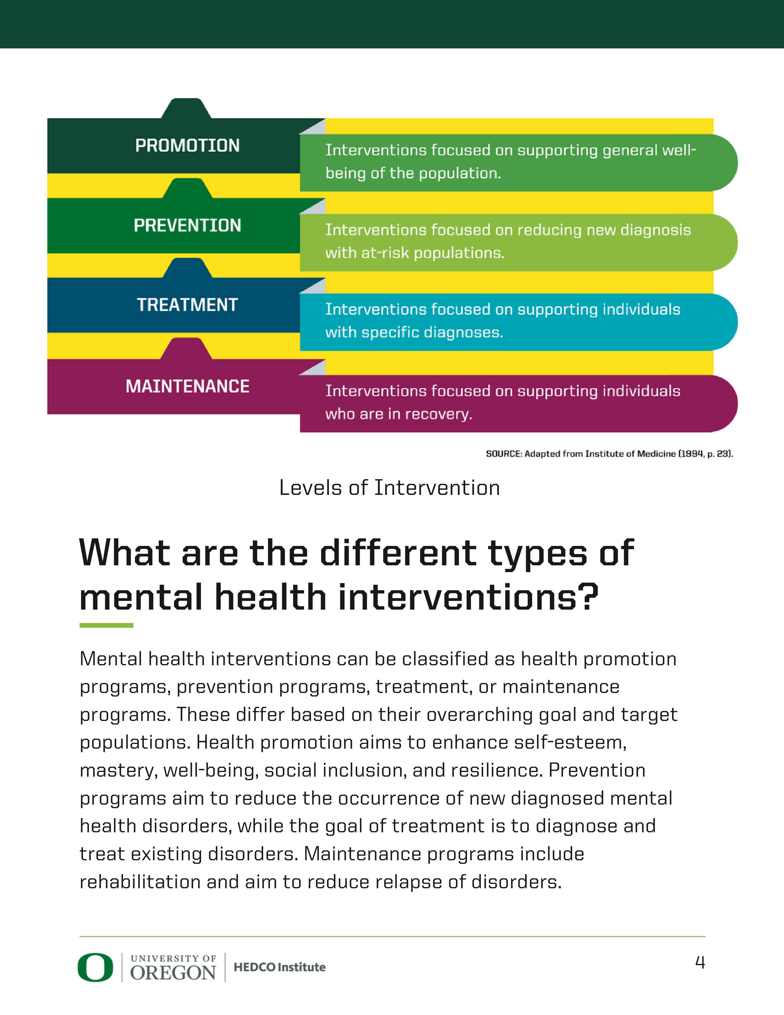 What are the different types of mental health interventions?