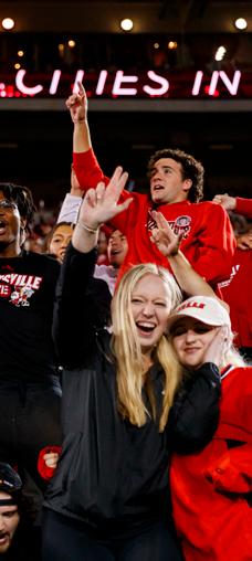 C-A-R-D-S CARDS! That’s our cheer, so get ready to hear a lot of it. We get to experience fandom on the big stage as members of the Atlantic Coast Conference (ACC), and students can attend most home games for free with their student ID. Football and men’s basketball student tickets are available thanks to the Ville’ns Student Ticket Membership Program.