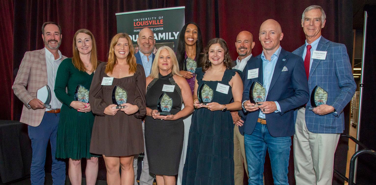The 2025 Family Business Awards and Summit, hosted by the UofL Family Business Center, brought together two signature events for an afternoon celebrating leadership and legacy in Louisville’s family business community. Held at the Angel’s Envy Bourbon Club at Cardinal Stadium, the gathering featured remarks from College of Business Dean Amy Henley and a keynote address by President and CEO Anne Bauer of Racket. The event concluded with the presentation of the 2025 Family Business Awards, honoring standout achievements in the following categories: