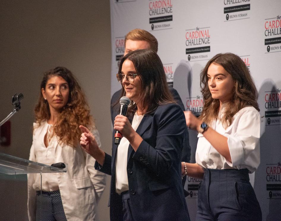 The 2025 Cardinal Challenge event, The Art of Entrepreneurship, brought together 13 teams of rising entrepreneurs at the Speed Art Museum for an evening that showcased forward-thinking, innovative products and services conceptualized and developed by the University of Louisville’s local and international competitors–students enrolled in Innovation and Global MBA programs at the College of Business. Teams competed for cash prizes, mentorship opportunities and for one team, the recognition of being named the