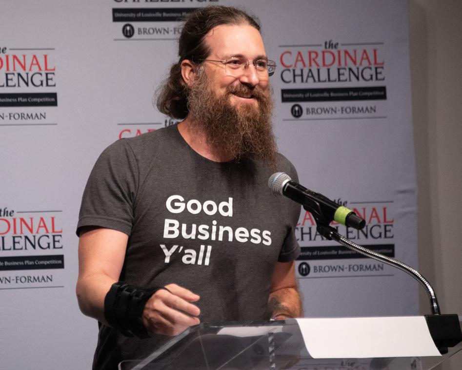 The 17th annual event branched away from its previous format of ranking and judging competitors, pivoting instead toward providing invaluable feedback and mentorship opportunities from area industry leaders to each student team. The shift in event design also allowed event attendees to experience each presentation. Sergey Anokhin, Director of the Forcht Center for Entrepreneurship, explained his reimagined framework for the event, which focused on mentorship, advising and partnering with teams in lieu of ranking or judging. “Like art, entrepreneurship requires courage, iteration and vision,” he