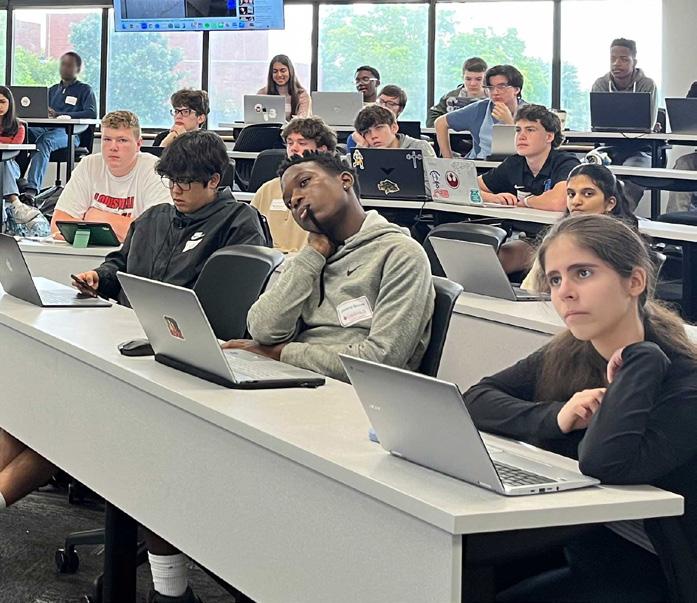 Though it functions as a class, Sandbox is more like a launchpad. Originally created as an experiment at Brigham Young University in 2020, the two-semester capstone experience is geared toward entrepreneurs with a passion for software technology and is facilitated through the Forcht Center for Entrepreneurship. Students in management, computer information systems or Bachelor of Business Administration programs participating in the course are placed into twoor three-person groups with learners in UofL’s electrical engineering program at the J.B. Speed School of Engineering and graphic design program at the College of Arts and Sciences. The Sandbox platform challenges these small teams to cultivate relationships with their curated venture capitalist network, including mentors and early adopter customers, pitch their products to prospective backers and develop design prototypes. “You have your individual team that’s