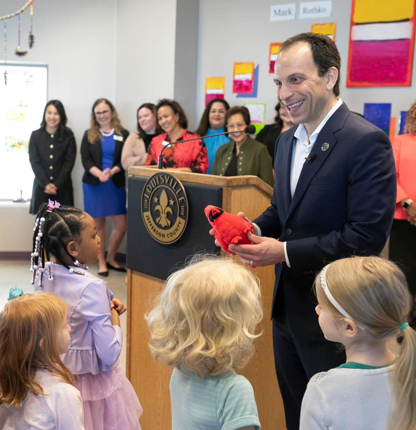 Our Early Learning Campus hosted Metro Louisville Mayor Craig Greenberg and community leaders for the launch of Thrive by 5 Louisville, a 501c3 nonprofit that will create a pathway to universal pre-k in Louisville. Early learning advocate and supporter Ashley Novak Butler will serve as board chair. Jon Lee, director of the college’s Early Childhood Research Center, served on the Mayor’s Early Learning Action Group that drove the development of the initiative. Jill Jacobi Vessels, director of the Early Learning Campus and associate professor of early childhood education, told guests, “This investment will have a tremendous impact on our city and help programs like ours train and retain highly skilled professionals, enhance our programming and prepare our young learners for success in their educational journey.”