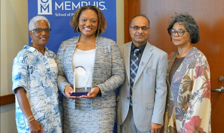(Left to right) General Rita Works, Dr. Michelle Taylor, Dean Ashish Joshi and Dr. Jan Young, Executive Director of the Assisi Foundation of Memphis, Inc., pose with the inaugural SPH CARES Champion Award.