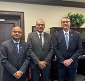 (Right to left) Dr. David Russomanno, Provost and Executive Vice President for Academic Affairs, Professor Ashraf Elmetwally, Professor of Epidemiology, CPHHI, KSAU-HS and Dr. Ashish Joshi, SPH Dean