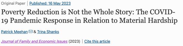 Meehan, P., Shanks, T. Poverty Reduction is Not the Whole Story: The COVID-19 Pandemic Response in Relation to Material Hardship. J Fam Econ Iss (2023).