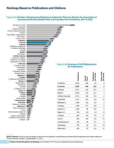 Note 6.5 and 6.6: Faculty counts are based on data from the Engineers Canada Resources Report (2015) Publication and citation data from Thomson Reuters InCitesTM, updated March 11, 2017.