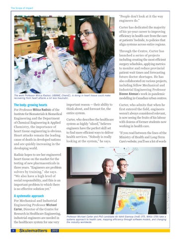 The body: growing hearts For Professor Milica Radisic of the Institute for Biomaterials & Biomedical Engineering and the Department of Chemical Engineering & Applied Chemistry, the importance of heart tissue engineering is obvious. Heart attacks remain the leading cause of death in developed nations and are quickly increasing in the developing world.