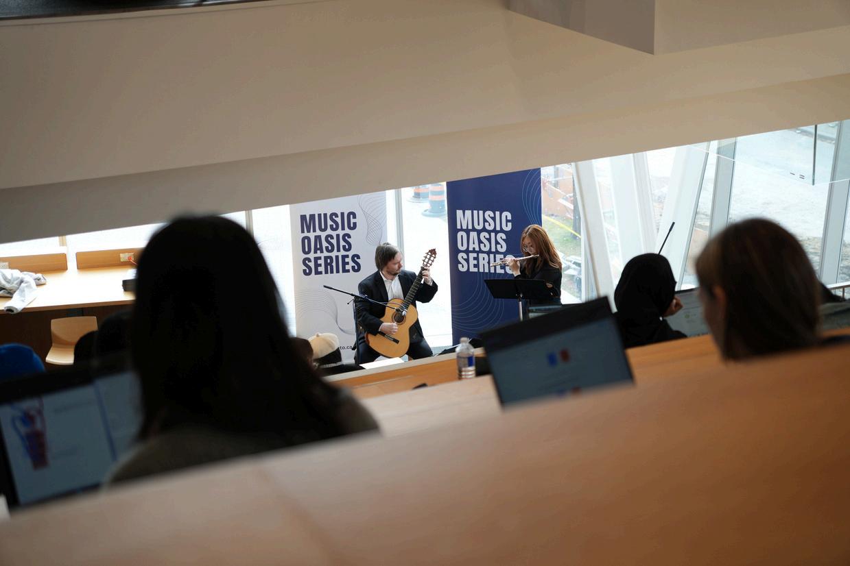 Launched in 2022, this series of free concerts is presented by the Faculty of Music in nontraditional performance spaces across the tri-campus. Our students have performed at the Faculty of Law's Jackman Law Building, Faculty of Applied Science & Engineering's Myhal Centre, Robarts Library, and University of Toronto Mississauga's Oscar Peterson Hall and William G. Davis Building.
