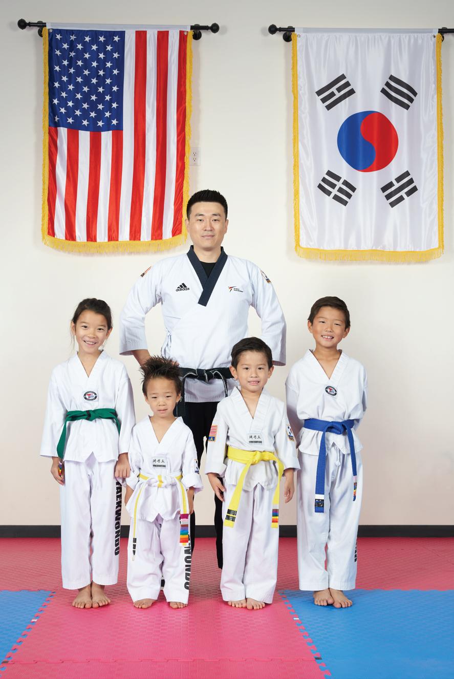 Jin Youl started his school near the front of Sienna in 2021, around the same time his wife, Jennifer, opened her Sugar Land-based Japanese restaurant, Umami. “I work well with all types of kids, because I have two silly kids of my own,” he says. He and Jennifer have an eight-year-old daughter and three-year-old son.
