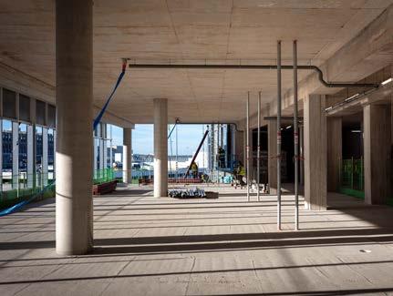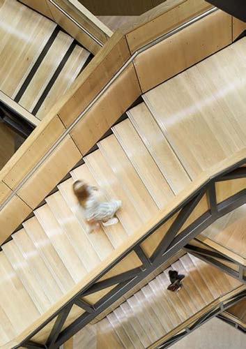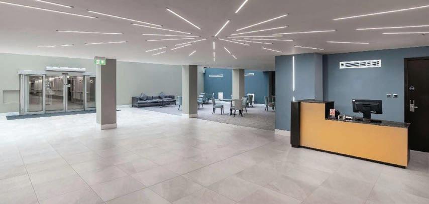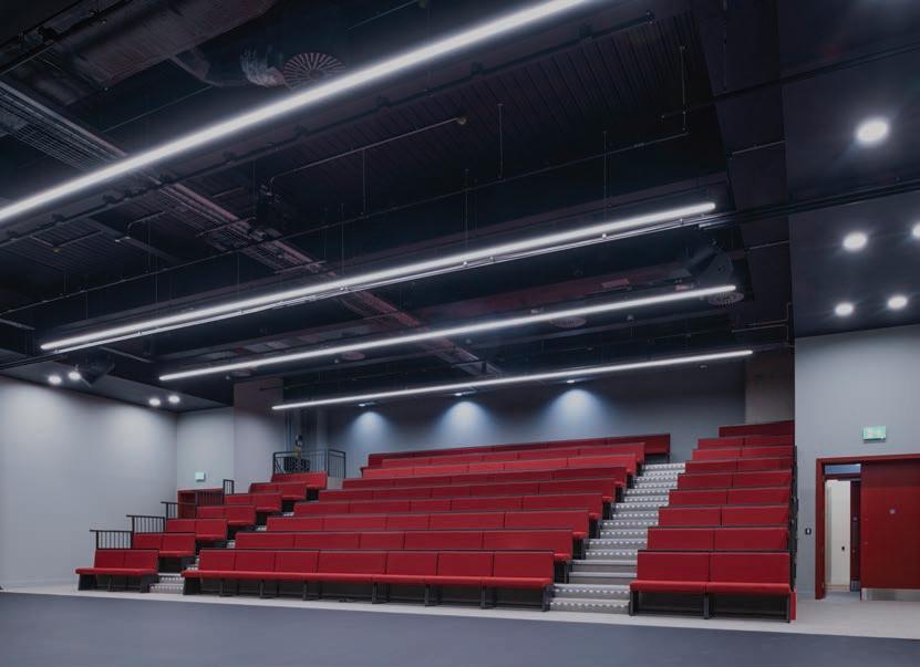 High-performance glazing and three fullheight atria maximise natural daylight, reducing reliance on artificial lighting and overall energy demand.