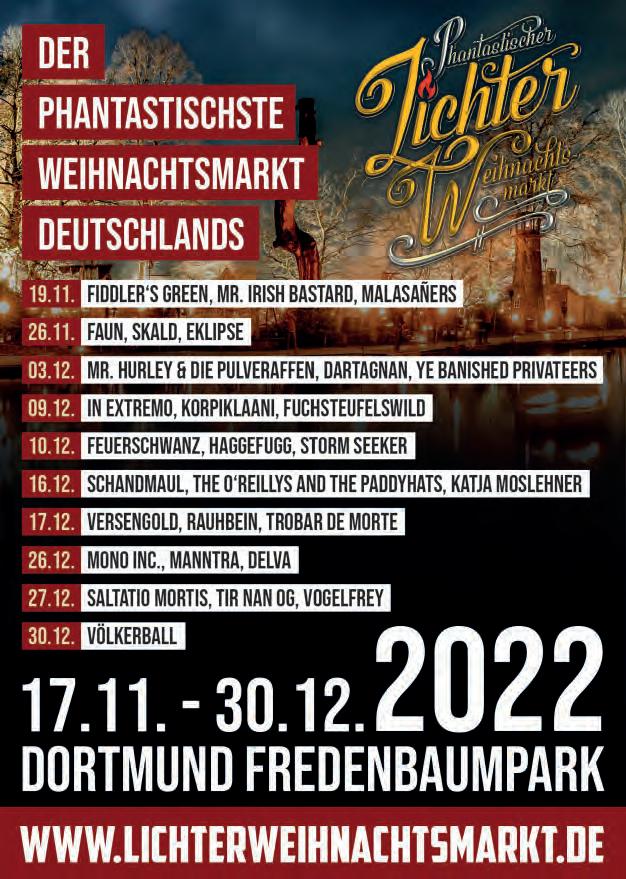 Do., 17. November bis Fr., 30. Dezember 2022 Fredenbaumpark, Dortmund www.phantastischerlichterweihnachtsmarkt.de Fotos: Andrea Rattay