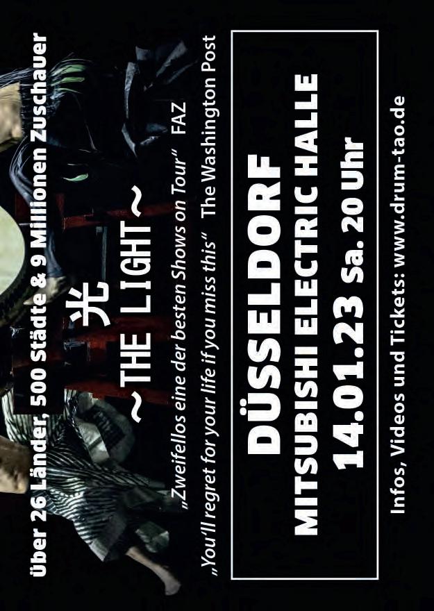 Explosiv und dennoch klassisch. Ursprünglich und trotzdem modern. Millionen Zuschauer konnte das japanische Trommel-Ensemble TAO bereits bei Gastspielen weltweit begeistern. TAO verbindet in einer perfekten Performance die jahrhundertealte, überlieferte Wadaiko-Kunst mit Elementen der POP-Musik, eingebunden in eine minutiös darauf abgestimmte Choreografie. TAO hat japanische Trommelkunst neu definiert und sind die unbestrittenen Meister dieser alten japanischen Kunstform. Die weltweite Presse jubelt und