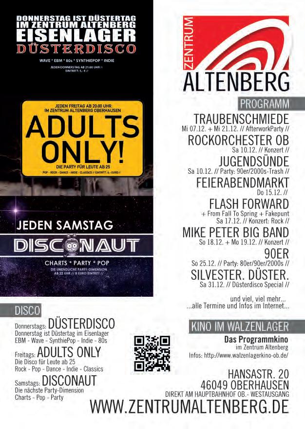 noch etwas wackelig auf den Beinen sind, verspricht der SkateSalon Ruhr sowohl Anfängern als auch Fortgeschrittenen sportlich-spaßige Stunden. Ein Verleih von Skateboards, Longboards, Inlineskates und Rollschuhen, Workshops, viele gemütliche Sitzgelegenheiten zum Chillen und Zuschauen sowie ein gastronomisches Angebot runden das Erlebnis ab. Erwachsene sind für fünf Euro dabei; Kinder (bis sechs Jahre) mit lediglich drei Euro. Mitte Dezember geht’s los!