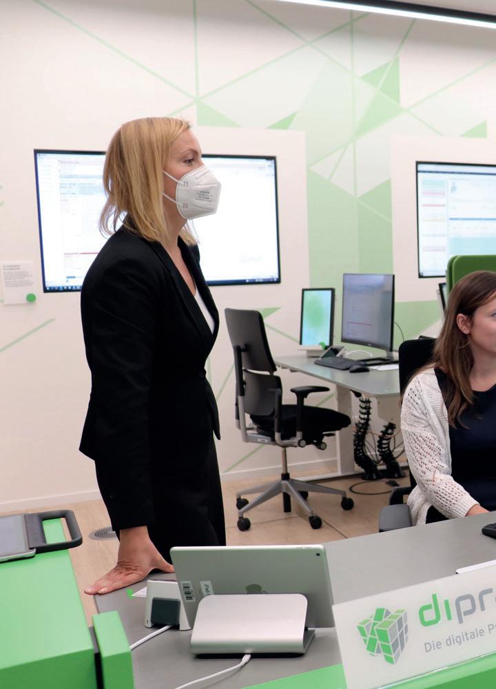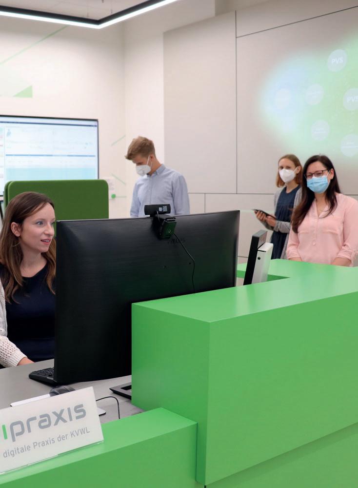 On top zur finanziellen Förderung bekommt Dr. Shameska ein begleitendes Seminarprogramm. Der erste Seminartag passte optimal: In der innovativen KVWL-Ausstellung „Die digitale Praxis – dipraxis“ in Dortmund holte sich Dr. Shameska Anregungen, wie ein Praxisteam seine Workflows digitalisiert (siehe Foto). Der Ärztin ist es sehr wichtig, die Benefits der Digitalisierung zu nutzen. Die 35-Jährige steckt voller Ideen, wie sie ihre Hausarztpraxis später führen will – und genau solche Ärztinnen und Ärzte sucht und fördert die KVWL!