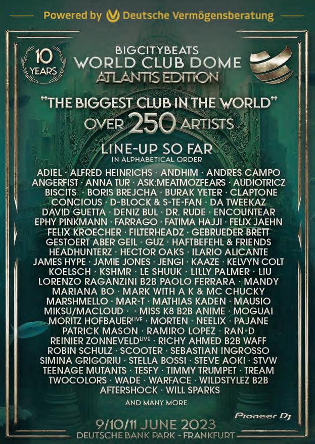 Das sagenumwobene Atlantis dient der Jubiläumsausgabe als Motto und verspricht eine audiovisuelle Vollbedienung, die mit aufregenden Bühnenbildern, kreativen Designelementen und nicht zuletzt wuchtigen Beats ins legendäre Inselreich lädt. Auf dem 700.000 Quadratmeter umfassenden Areal in Frankfurt