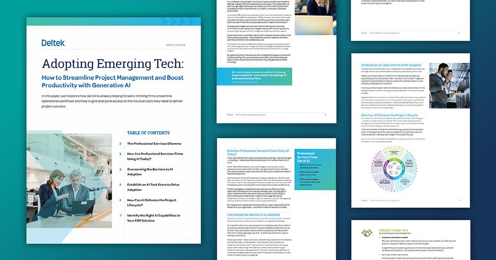 Deltek today launches its new guide Adopting Emerging Tech: How to Streamline Project Management and Boost Productivity with Generative AI’, leveraging new findings from