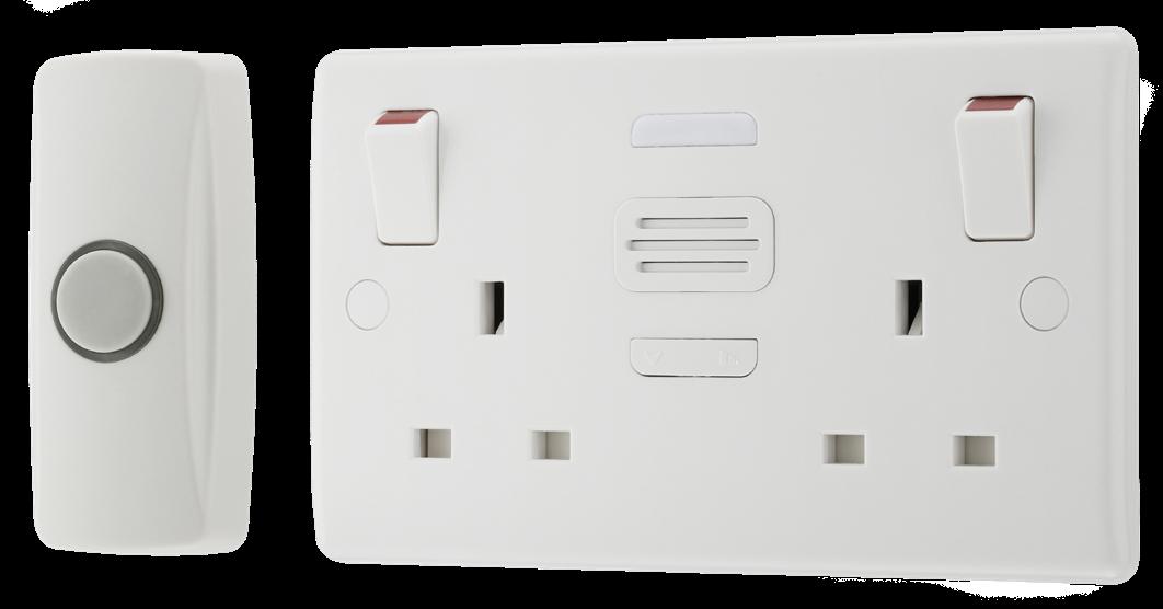 The BG Electrical products featured include the BG consumer units, Wi-Fi double switch sockets, integrated door chime, outdoor power socket, and smart home control socket.
