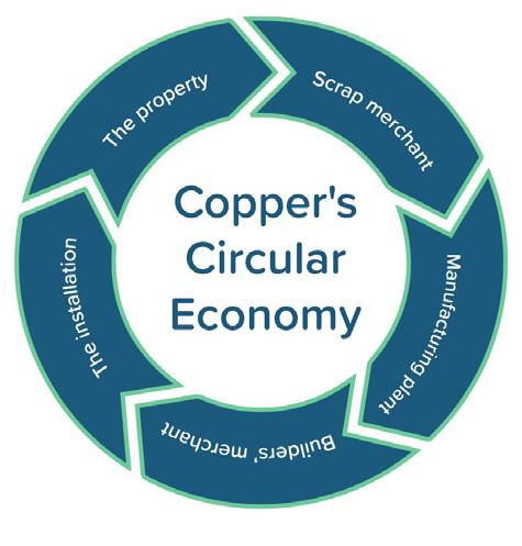 In Europe, it’s estimated that 70% of copper from end-of-life products is recycled, which rises to 90% in civil engineering projects. Copper also performs strongly in terms of carbon footprint, with recycled tubes and sheets having an embodied carbon of 0.84 CO2e/kg.