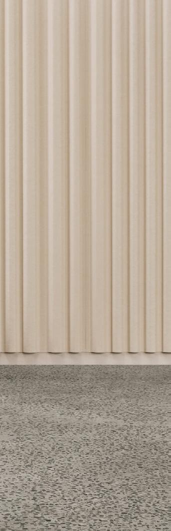 display. Fuji, a family of sound absorbing flowing acoustic tiles inspired by modern Japonisme the Fuji Collection of Hachi, Juni, Ku & Roku offer customisable configurations in tile size, colourway, hardware finish and suspension height; a family of 3D designs that uniquely enhance ceiling aesthetics and improve acoustic control, transforming and elevating the entire rooms ambiance. The chosen colour palette of the Material Matters installation is Mint, Dusk and Cream creating a harmonious, delicate and importantly practical ceiling space in the main talks area a; a stunning backdrop to this centre stage. (Pre-register at matterialmatters.design/visit).