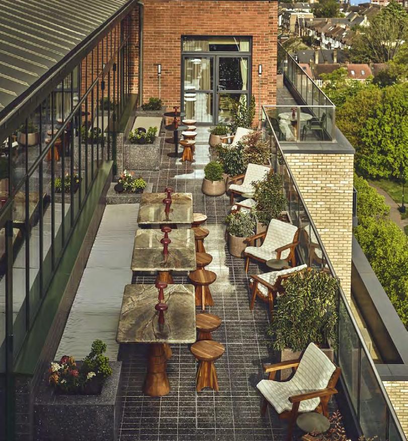 The 10th floor rooftop Orangery brings the greenery of the surrounding parks and marshes into the building and creates an oasis of calm. The space invites the outside in with skylights and greenery, and leads out onto large terraces, which boast views across the city. The design is deeply rooted in the rich tapestry of its neighbourhood, a vibrant and diverse community, encircled by the local area of verdant parks, reservoirs, built-up residential zones and the picturesque Walthamstow Marshes.