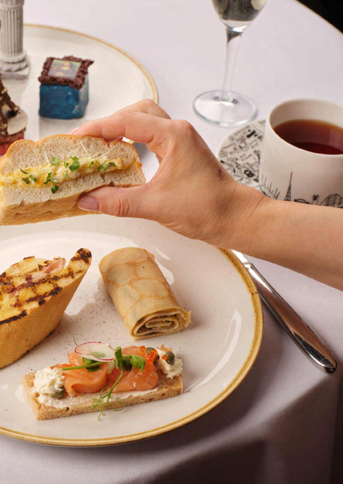 The new afternoon tea lineup features a selection of delicious sandwiches with nods to various French flavours, including the Jambon-beurre; a French baguette with sliced ham and cheese, the Crêpe; containing roasted vegetables and soft cheese, Tartines; a sandwich with smoked salmon, capers and cream cheese, and Sandwich Lyonnaise, which is made up of egg mayonnaise and mustard cress served on focaccia.