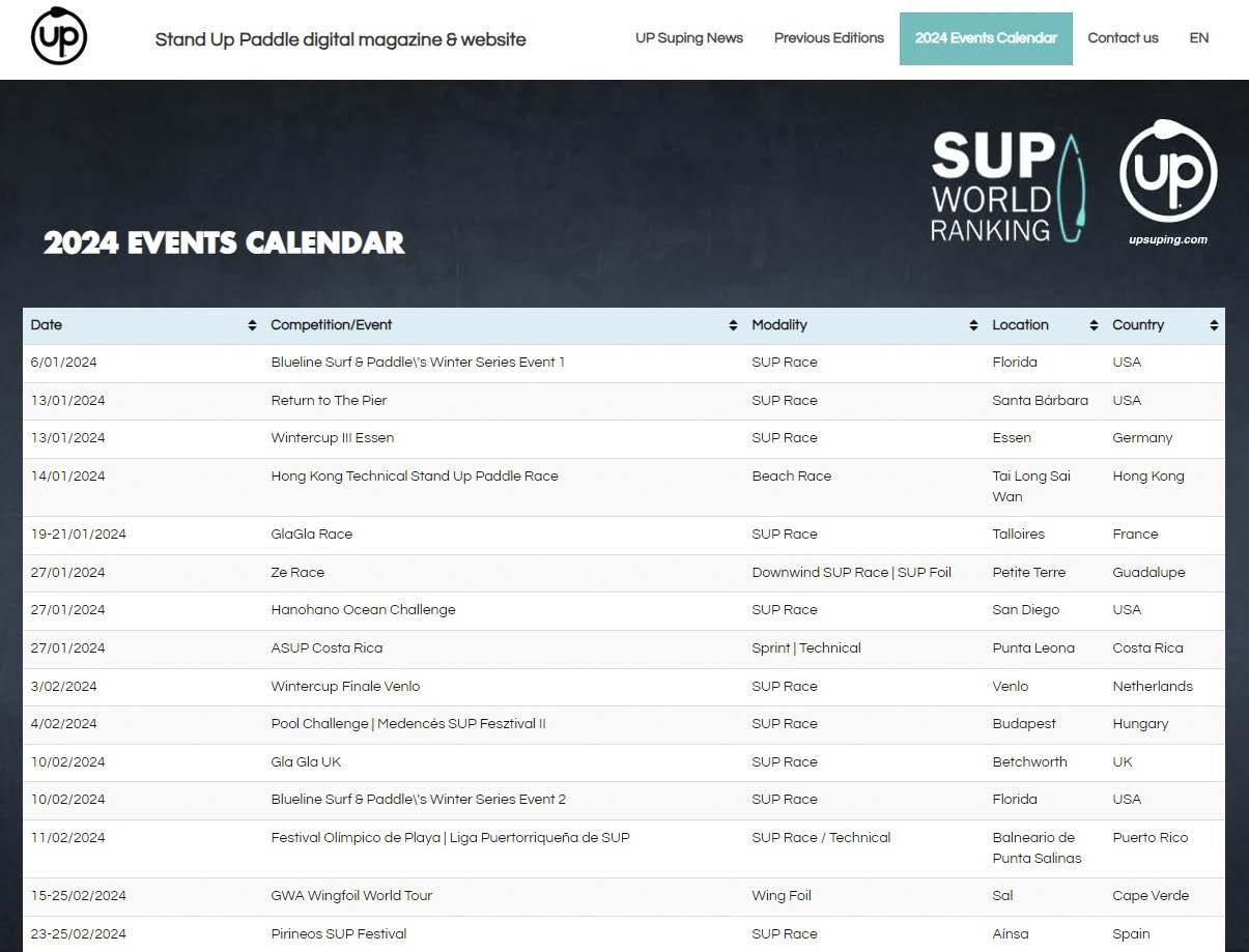 Do you want to participate in a competition? In our calendar you will find events in Spain and rest of the world. ¡Go to www.upsuping.com! 2024 CALENDAR