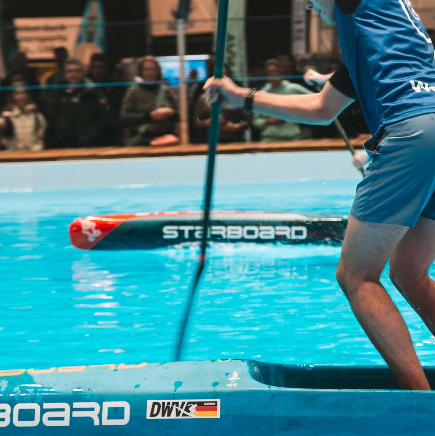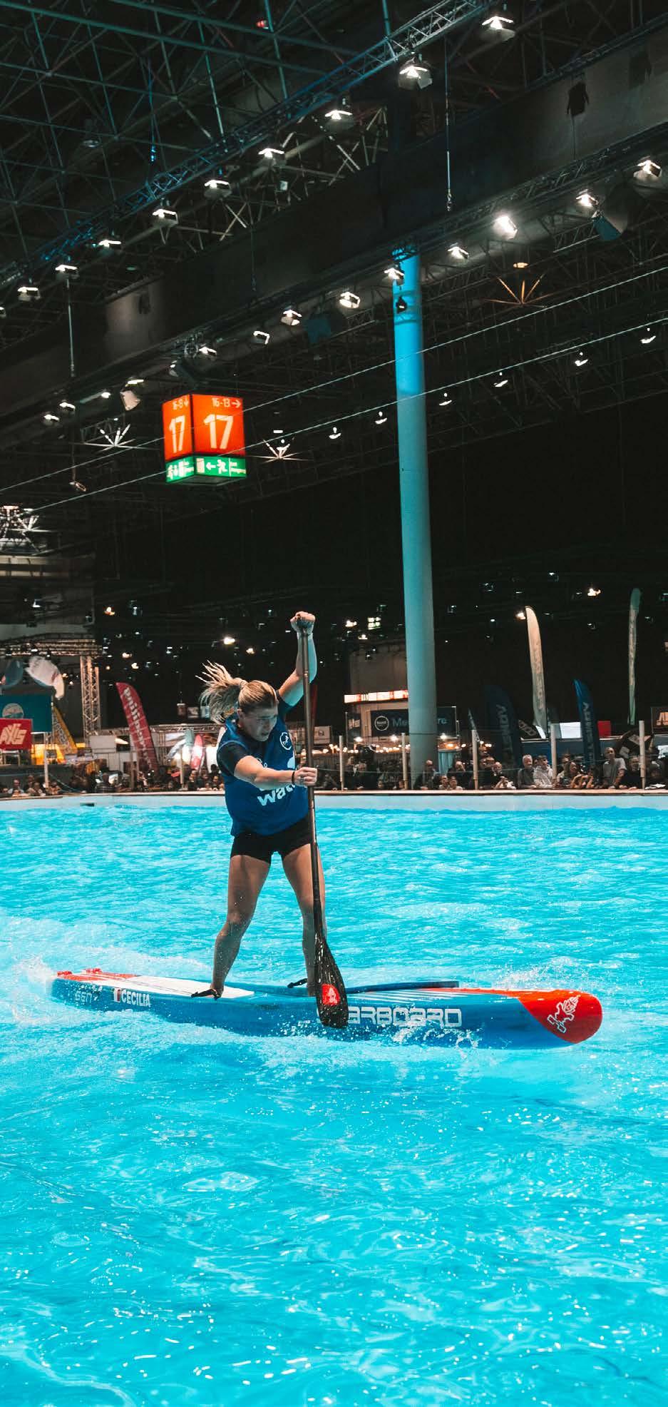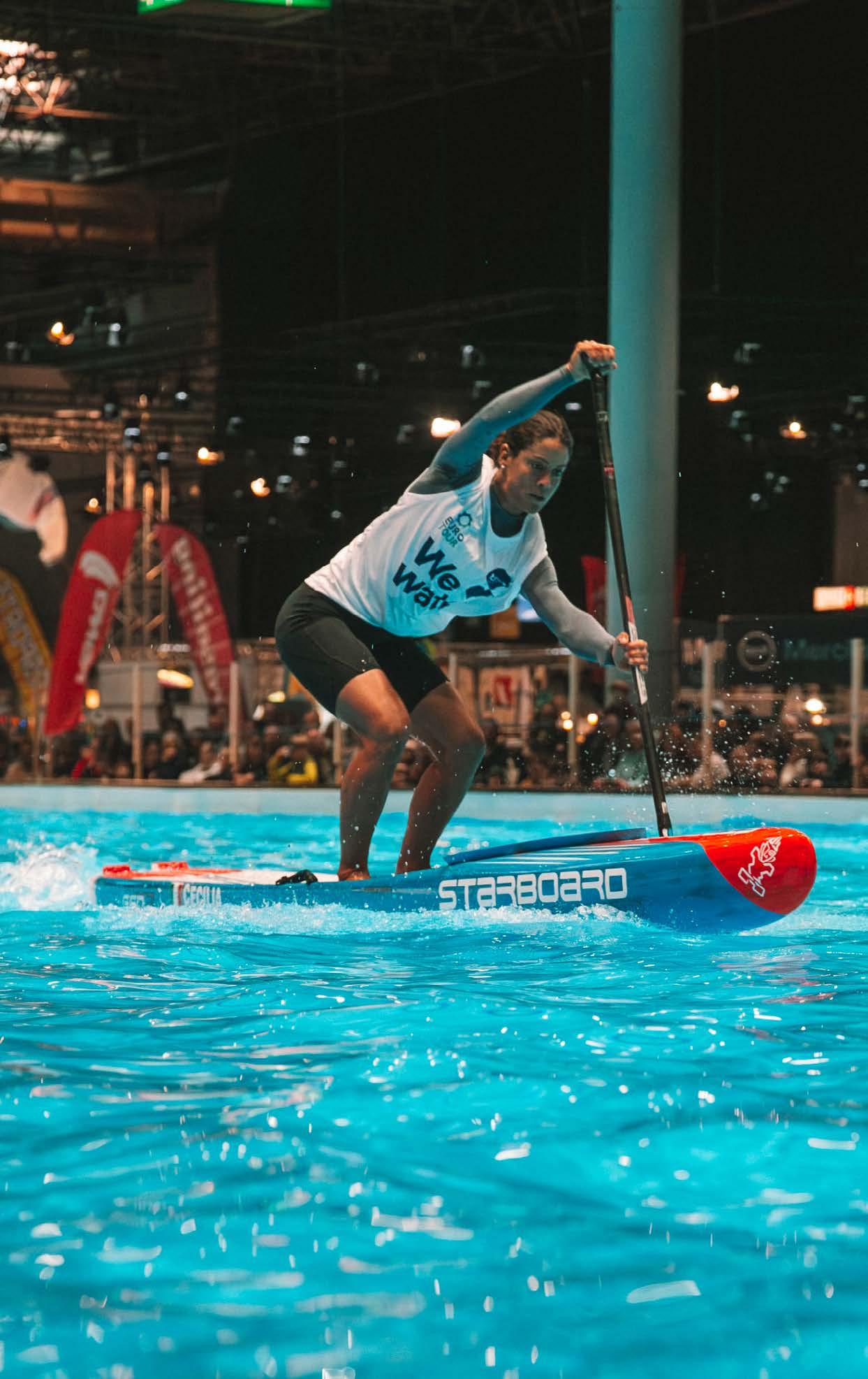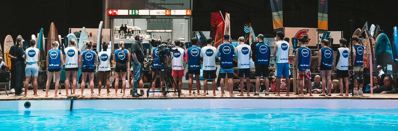 The situation changes when we talk about Indoor SUP. More than 15-20 years ago, we could see some introductory sessions in indoor swimming pools, even activities with boards and paddles alongside people with physical disabilities, something that continues to be done today. But over time, some global event organisers saw the possibility of adding a competitive touch to these indoor activities. One of the first examples was the sprint competitions at the famous Paris Boat Show. Today, the baton has been passed to the great Boot Düsseldorf.